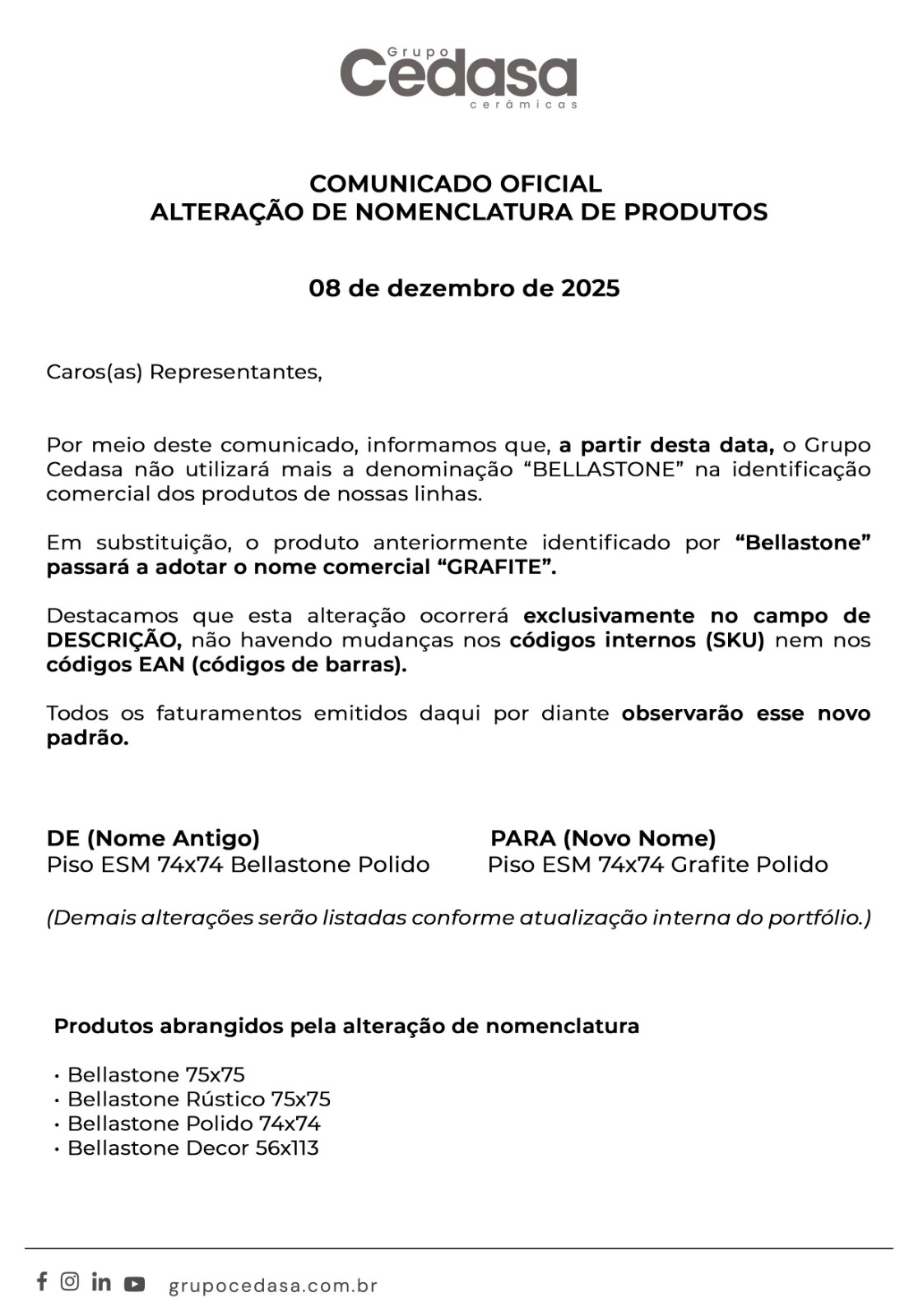 Comunicado Bellastone